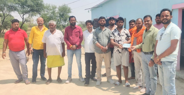 | पीड़ित परिवार के घर पहुंच कर चेक प्रदान करती मदद फाउंडेशन की टीम |